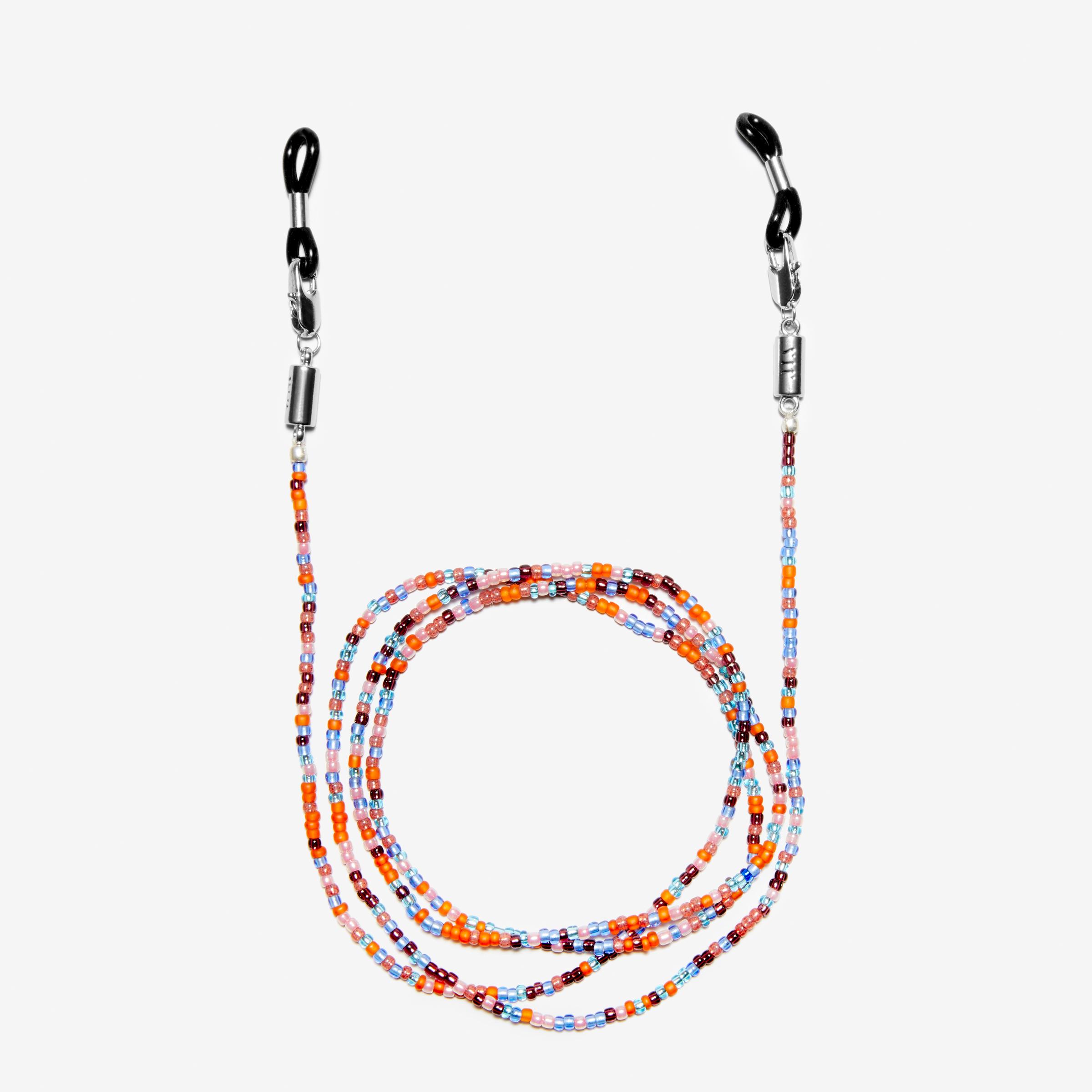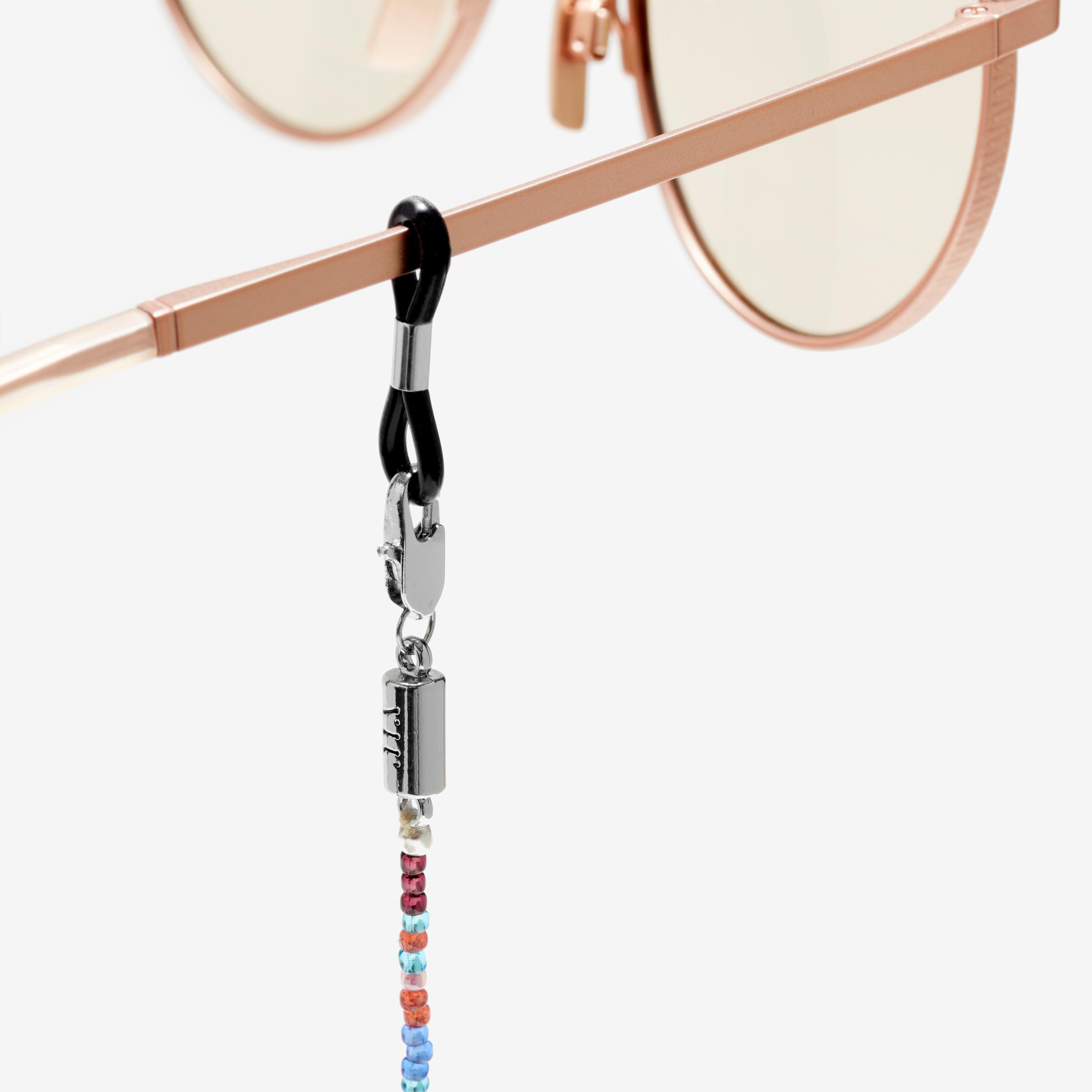 Filigrane japanische Glasperlen, kunstvoll von Hand zu einer Brillenkette gefertigt: The Beaded Chain. In Zusammenarbeit mit „Beads for Life“ in Kathmandu entsteht so ein Unikat mit Charakter – jetzt als Special Edition in Empower Pink zum Women’s Day 2025.