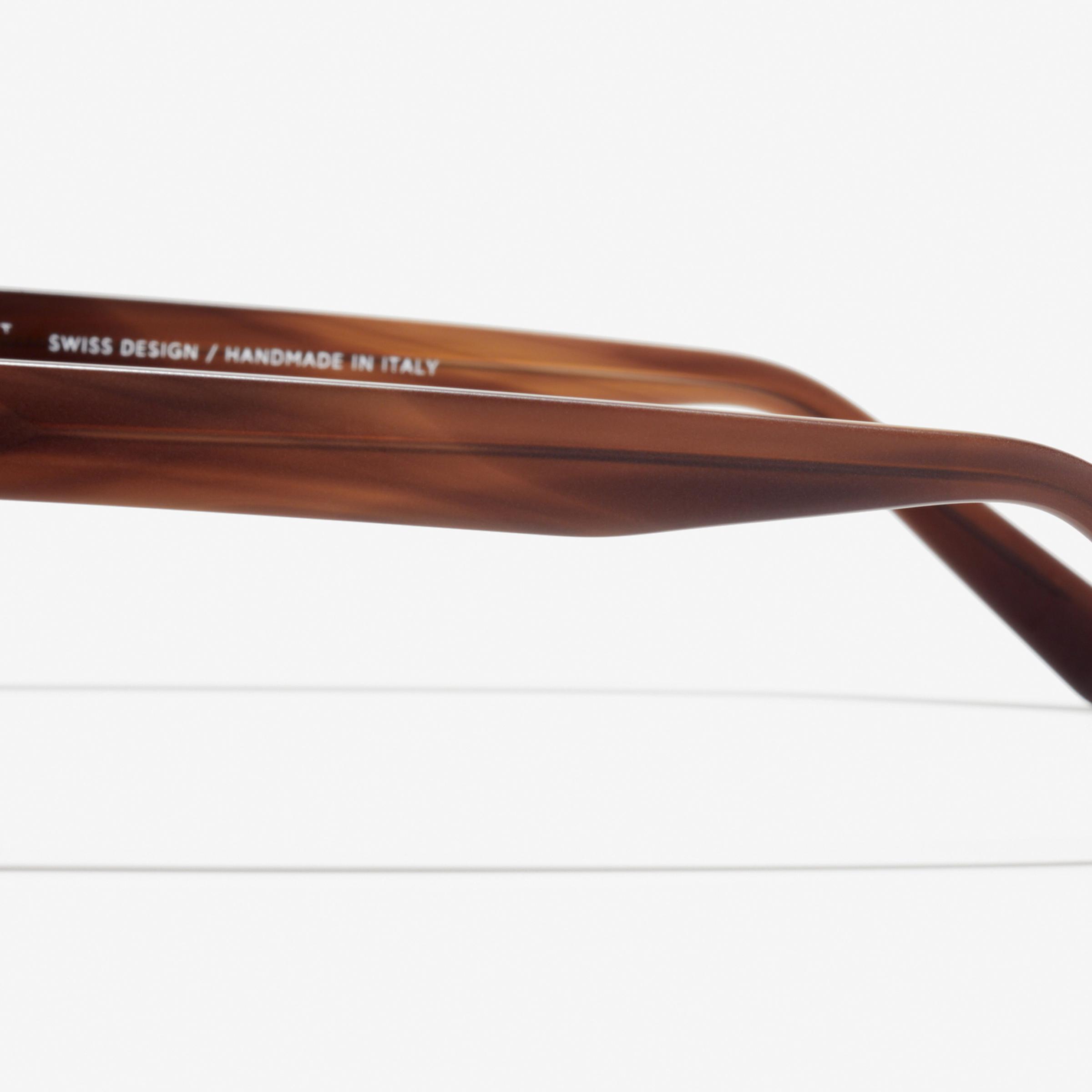 Hard to put into words: these curved acetate frames with a flat butterfly shape and angular lenses create an impressive look that leaves you speechless.
