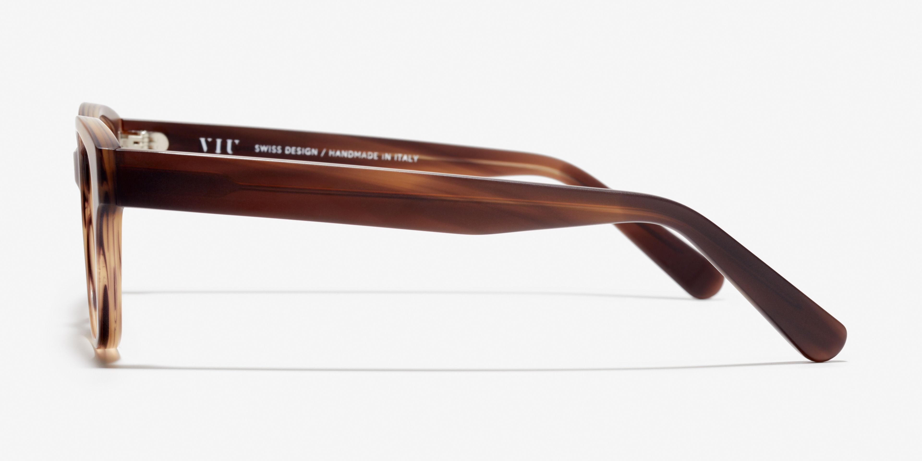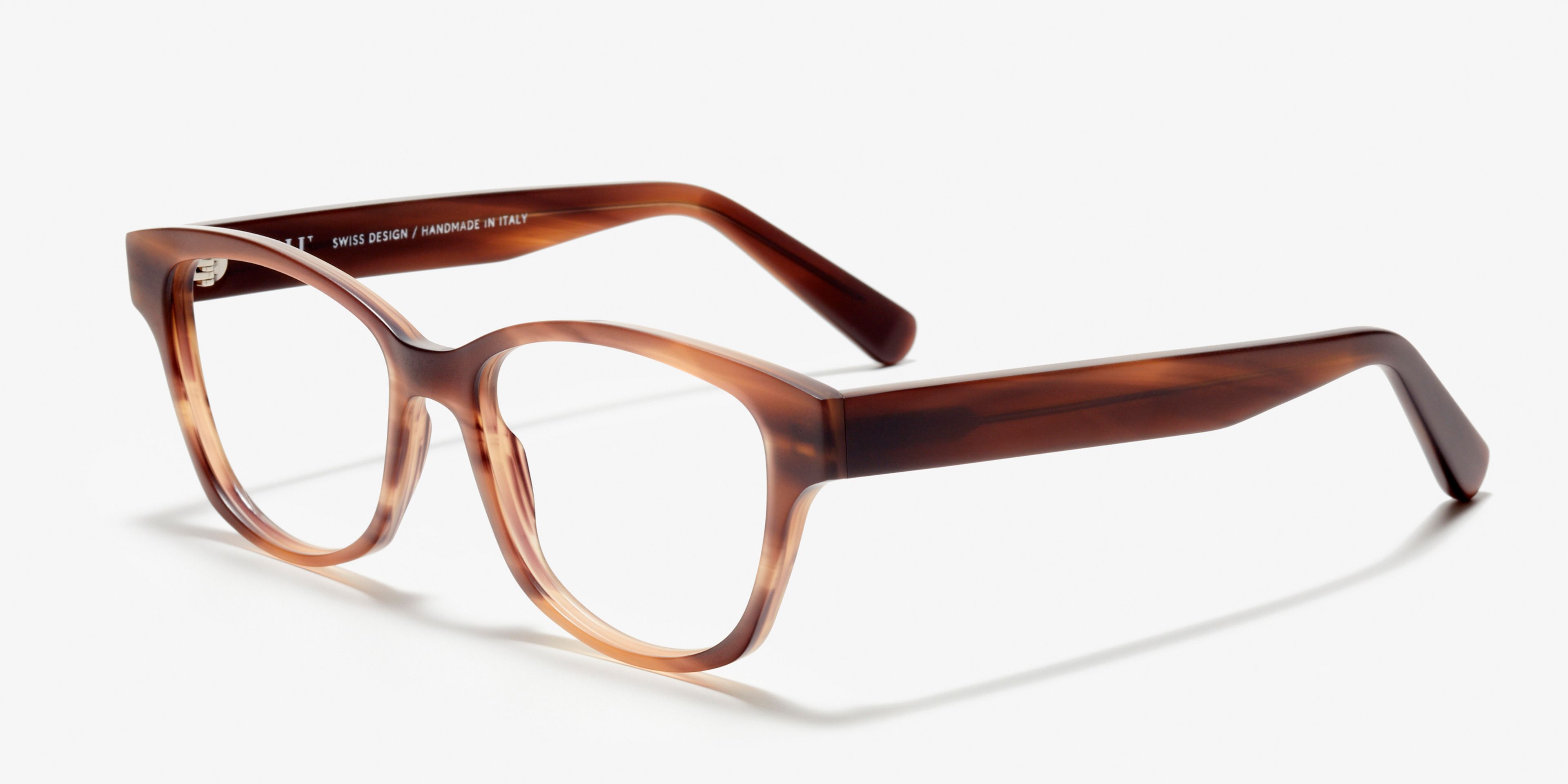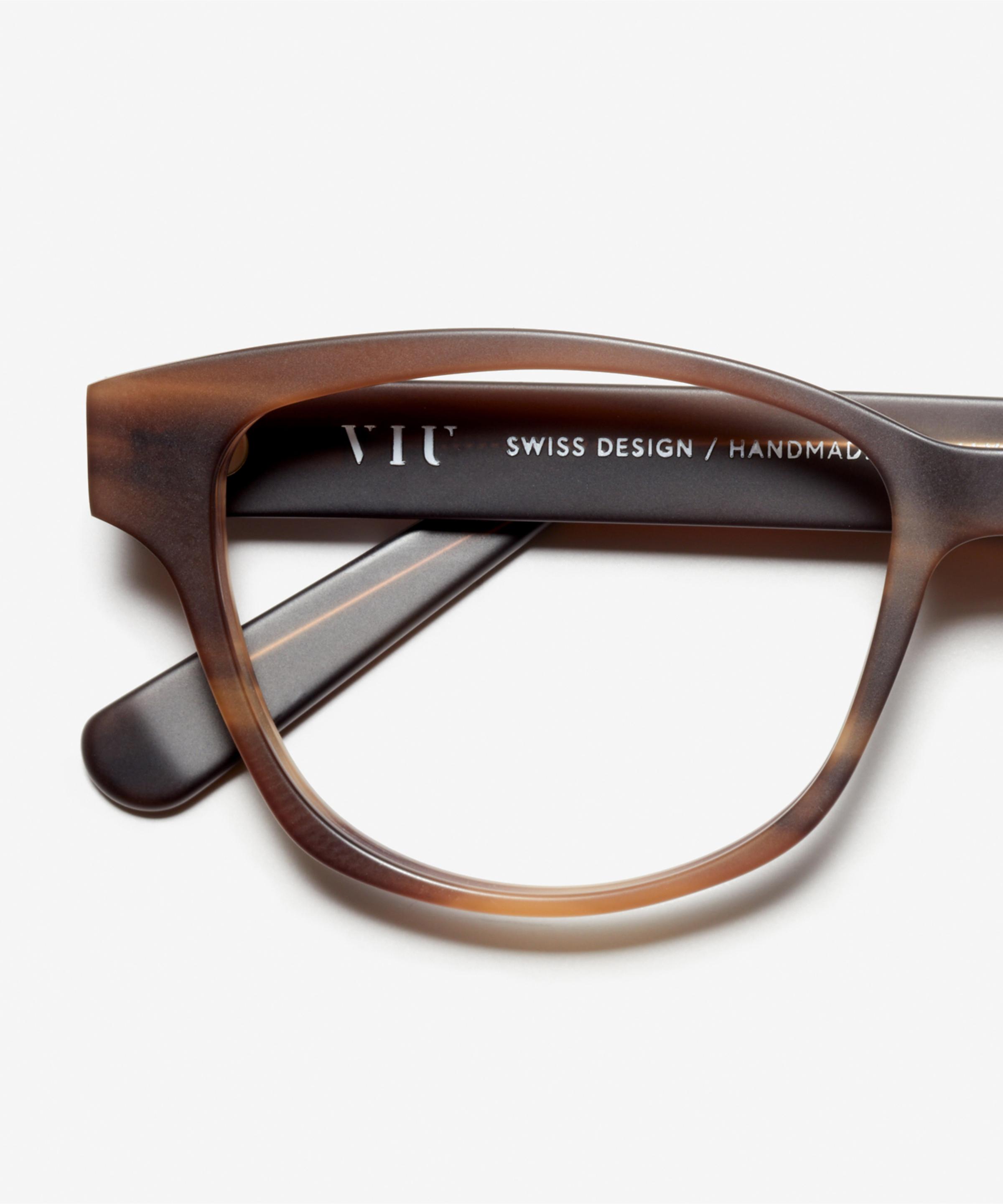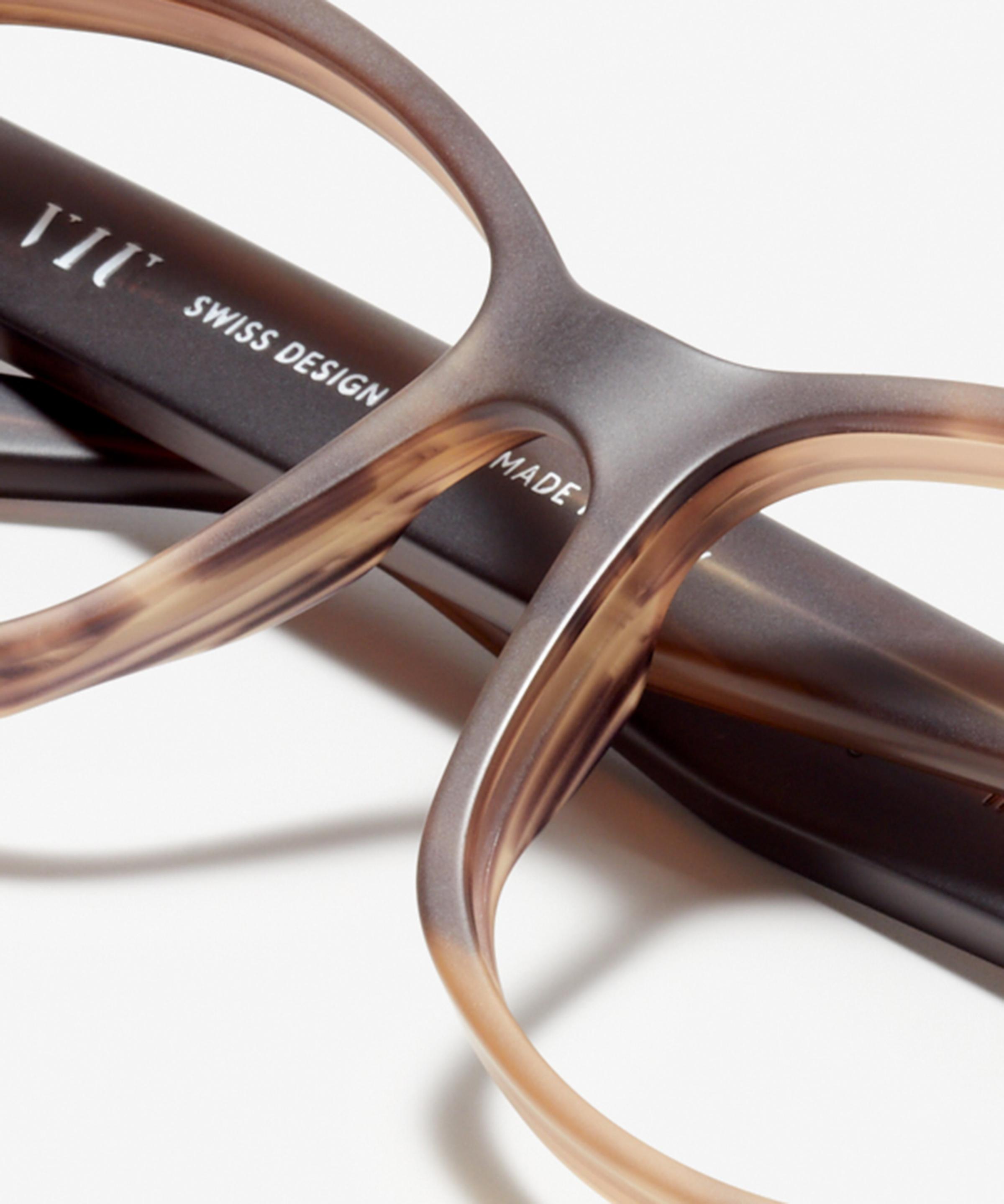 Hard to put into words: these curved acetate frames with a flat butterfly shape and angular lenses create an impressive look that leaves you speechless.