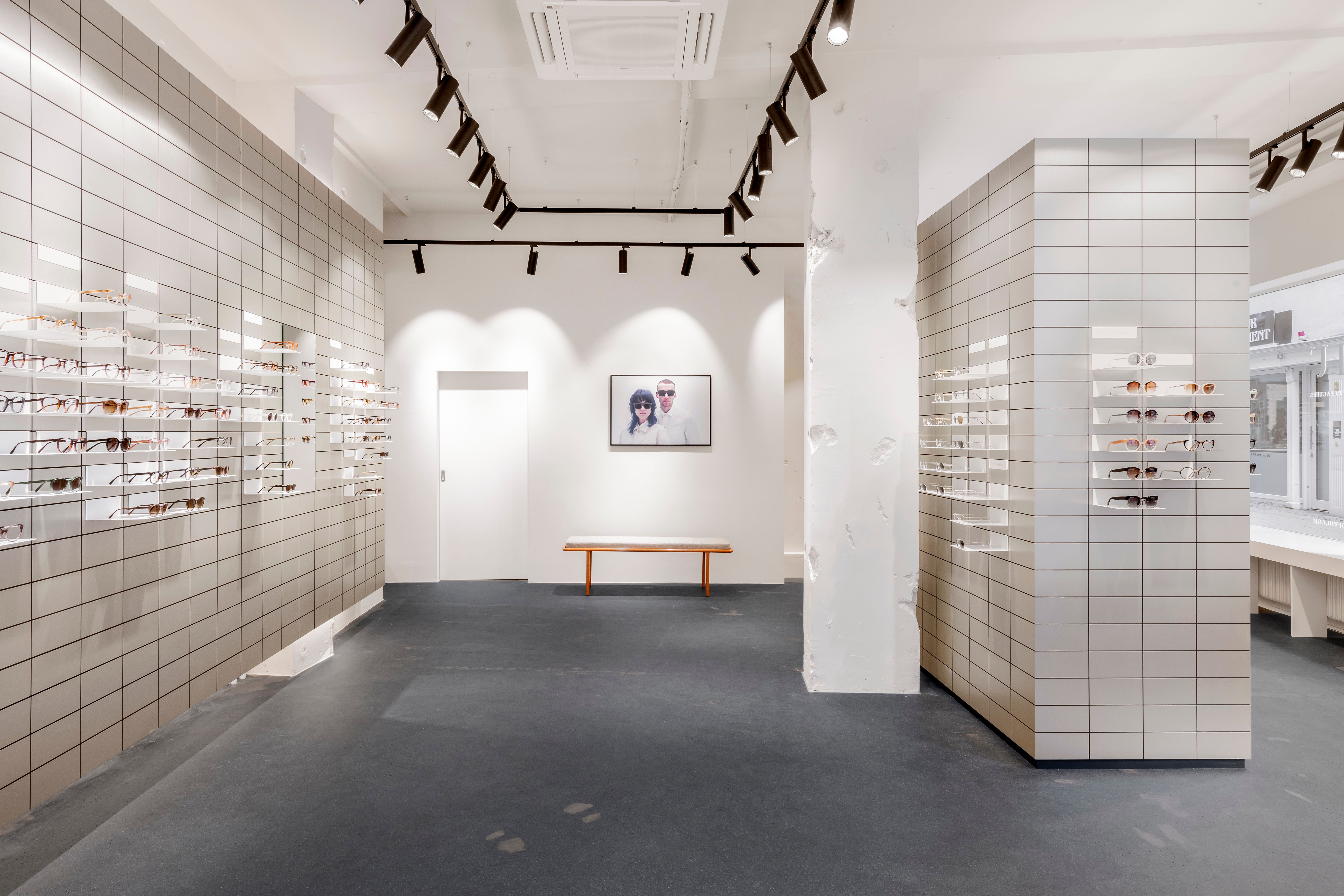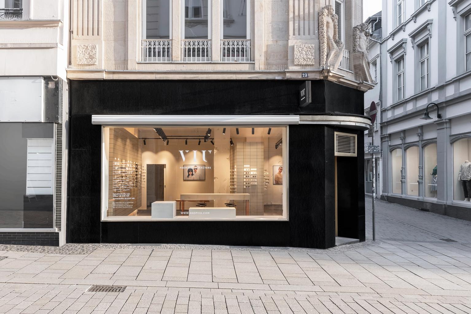 About our VIU Store in Wiesbaden's City Center On about 70 sqm, you will find our glasses collection, and our store reflects the clear, simple design language of our design philosophy. The champagne-colored metal laminate wall harmonizes with the black-matte floor and the orange-brown metal accents on the sales table and stools. Our store is located in the heart of the city center, in Wiesbaden Mitte, and is easily accessible by public transport, for example, by city buses. The store is also easily accessible on foot. We are located at the corner of Marktstraße/Wagemannstraße, not far from the market square and the Wiesbaden City Palace. Thanks to our generous opening hours, you have enough time to visit us at the store: We are open for you six days a week.