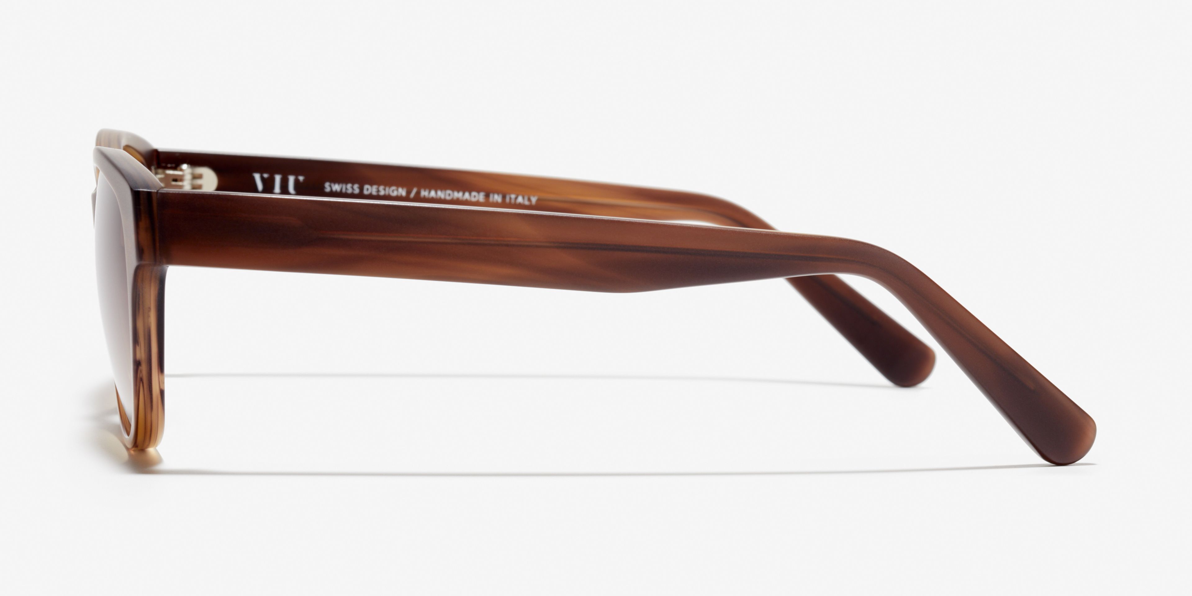 Hard to put into words: these curved acetate frames with a flat butterfly shape and angular lenses create an impressive look that leaves you speechless.